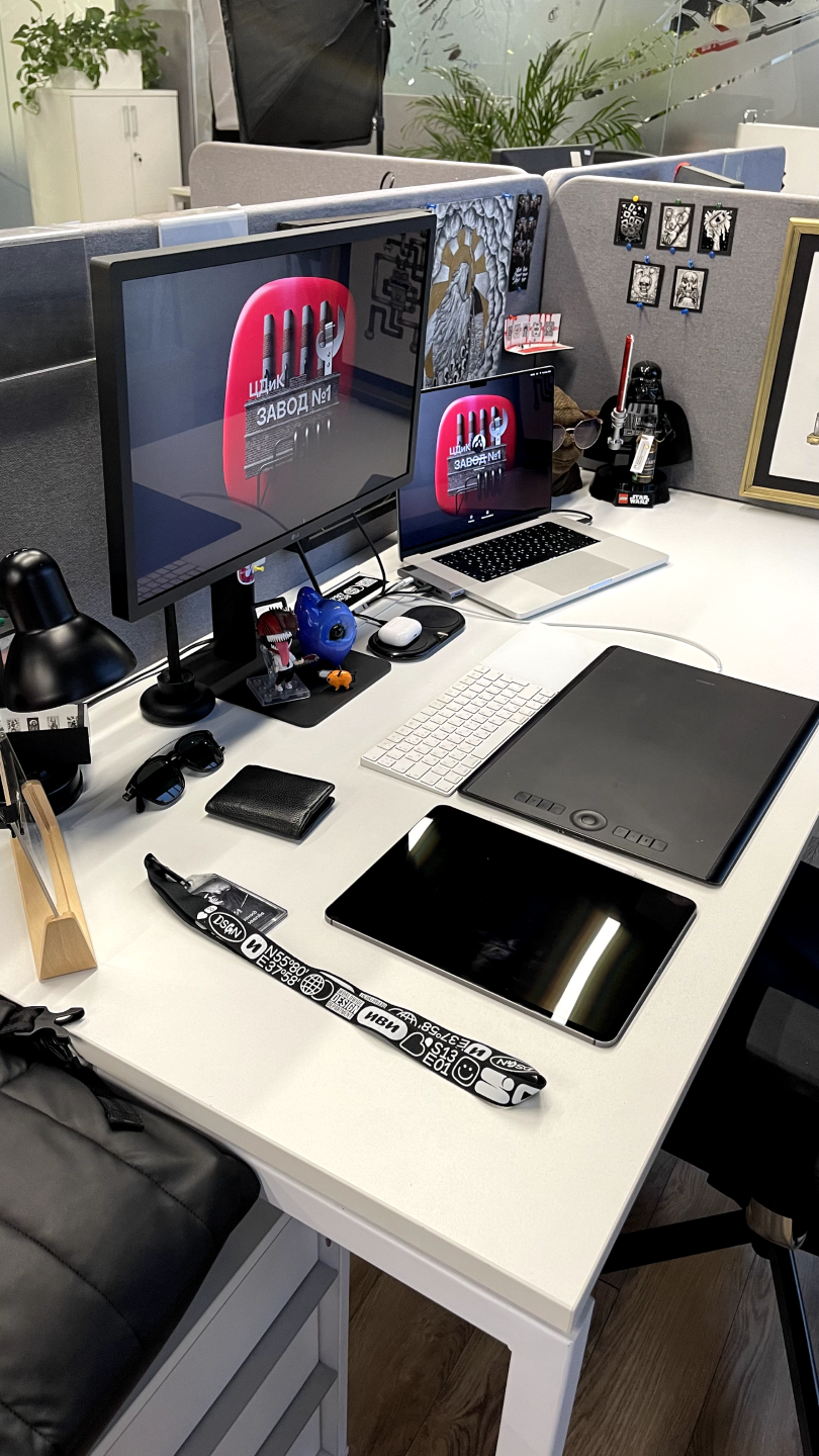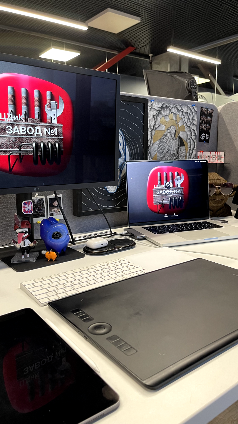 Для работы в основном Adobe Photoshop, Illustrator, Figma и Cinema 4. Планирование в Jira. Коммуникация в Slack и телеграмм.