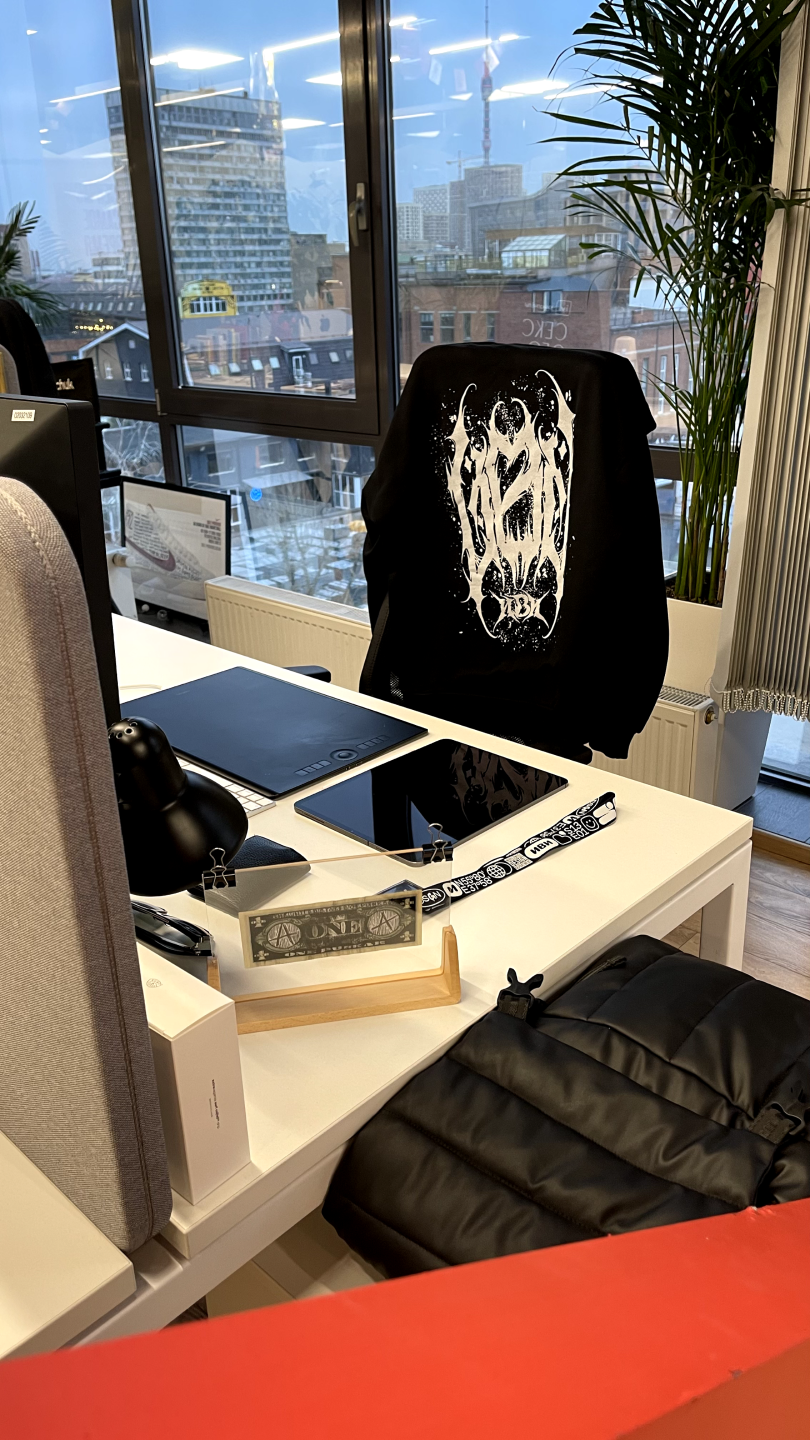 Сначала пробовал рисовать, нравилось направление граффити, постепенно на курсе 1-2 начал пробовать что-то перенести в диджитал, стал изучать Corel Draw и Photoshop. Первые работы в айдентинке делал для компании моего отца.