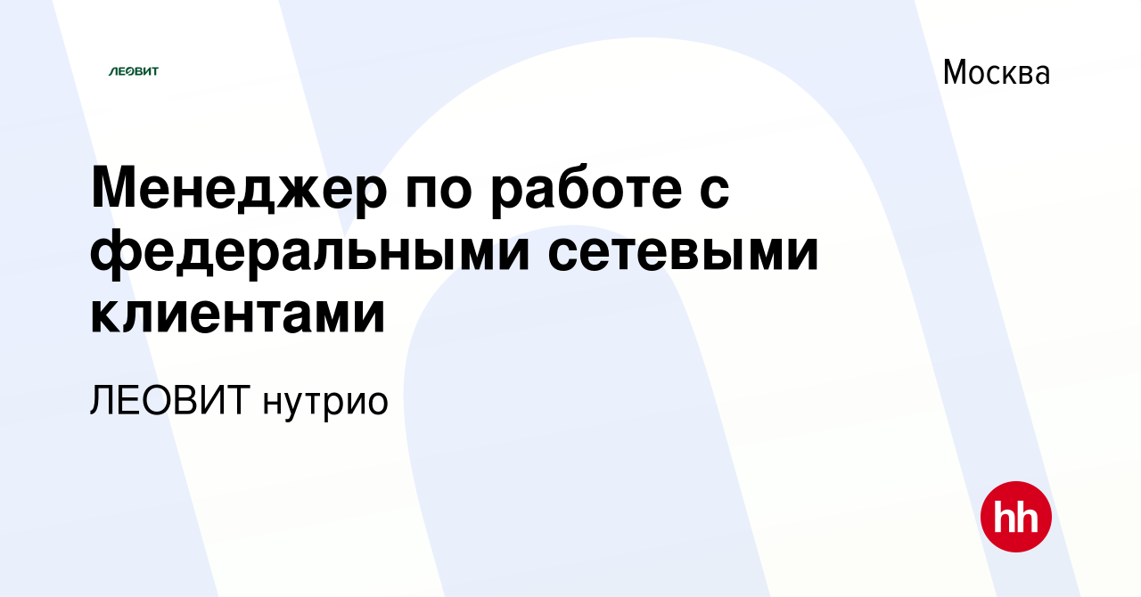Вакансии компании «ЛЕОВИТ нутрио» в Москве, работа в . . .