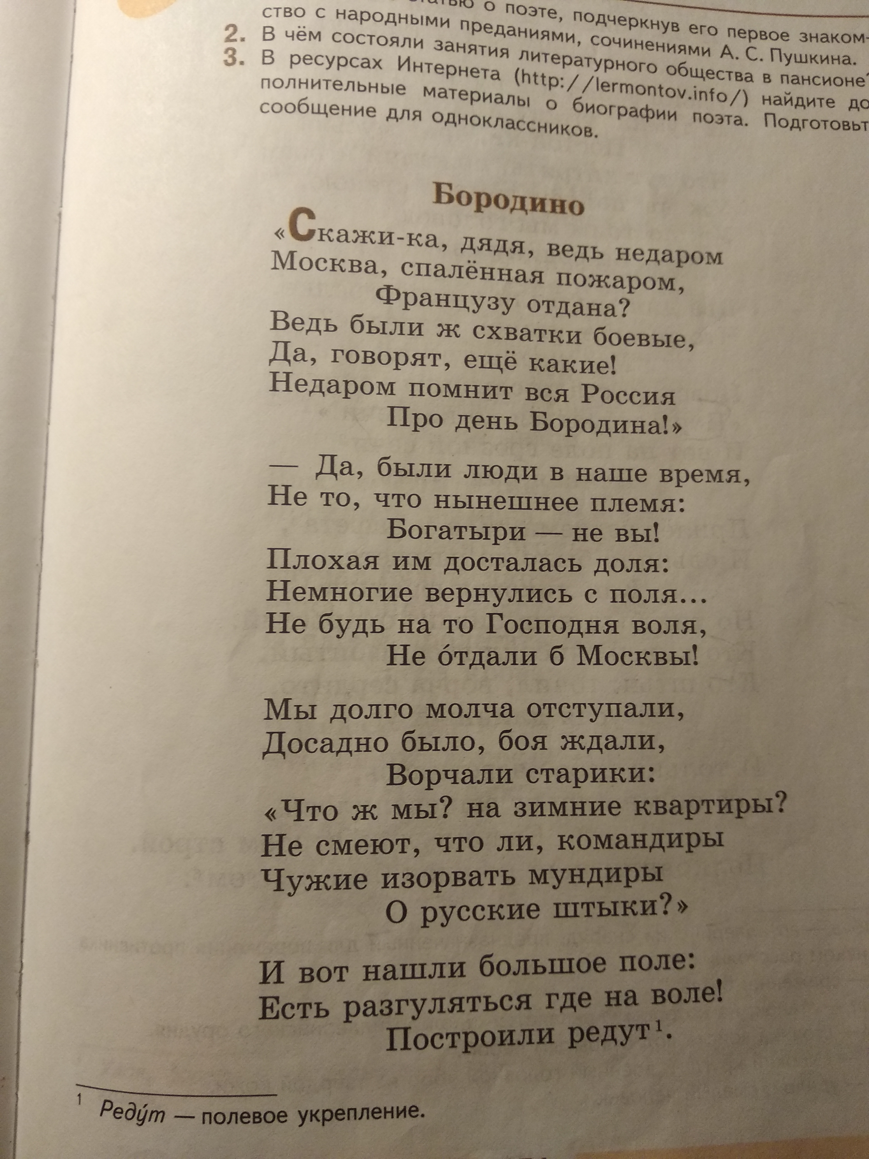 Лермонтов бородино 5 класс читать 125 фотографий