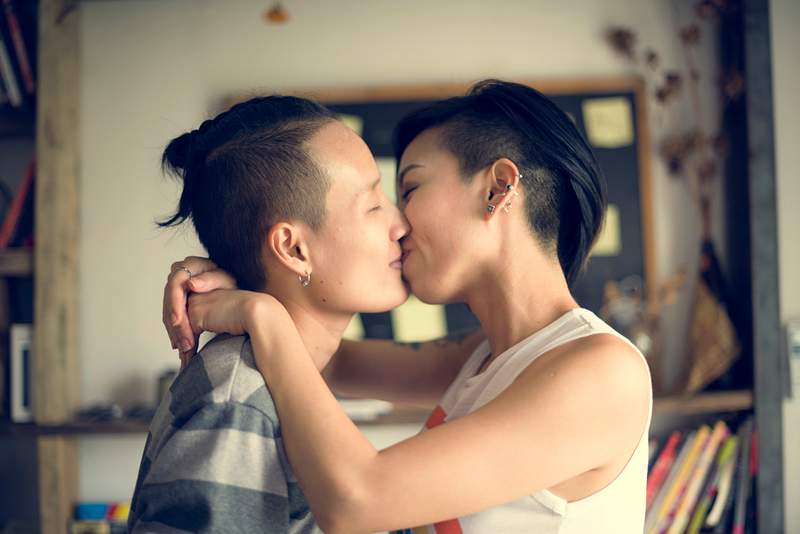 Lesben-Paar hat einen Dreier mit einem Typen
