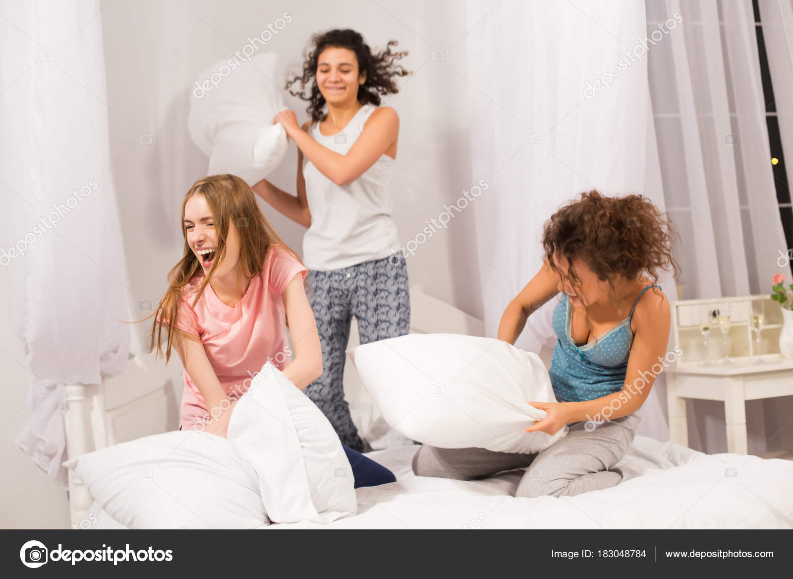 Lesbians Pillow Fight