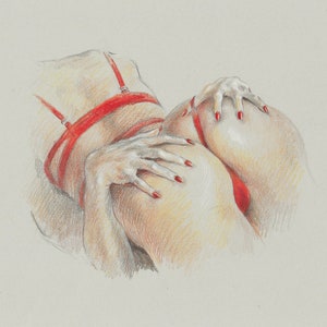 Big assed Mädchen in roten Strümpfen steckt ihre Hand in den Arsch zum Ellbogen
