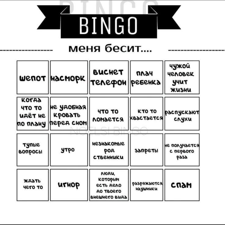 Лето 2025 бинго из тт