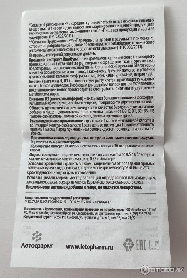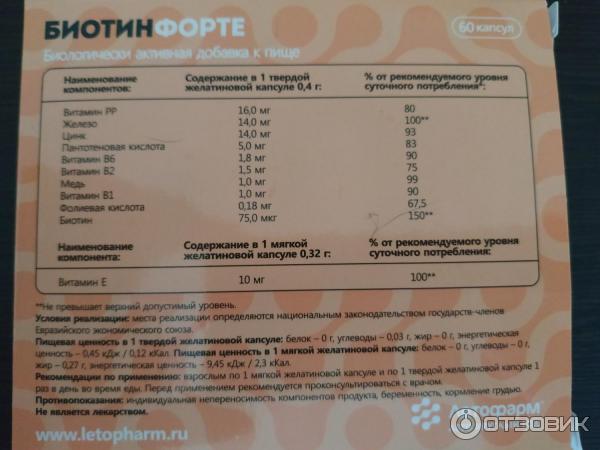Биотин форте (Летофарм) - обзор добавки, инструкция и цены