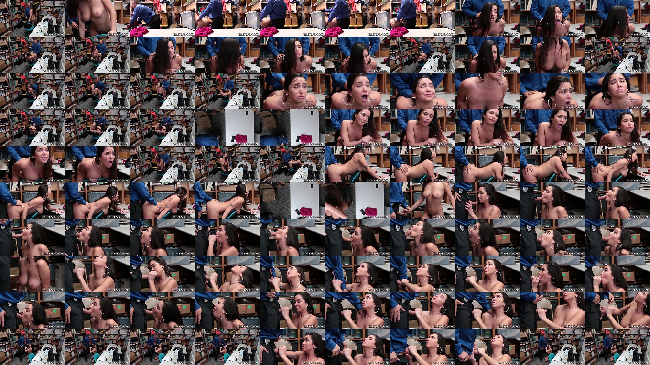 Teen shoplifter is arrested by LP security for stealing in a supermarket .The officer conducts a strip search and he then tells her that he wont call the cops if he can fuck her .The officer pulls out his cock and lets her throat it before he fucks her . 762k 100% 7min - 720p