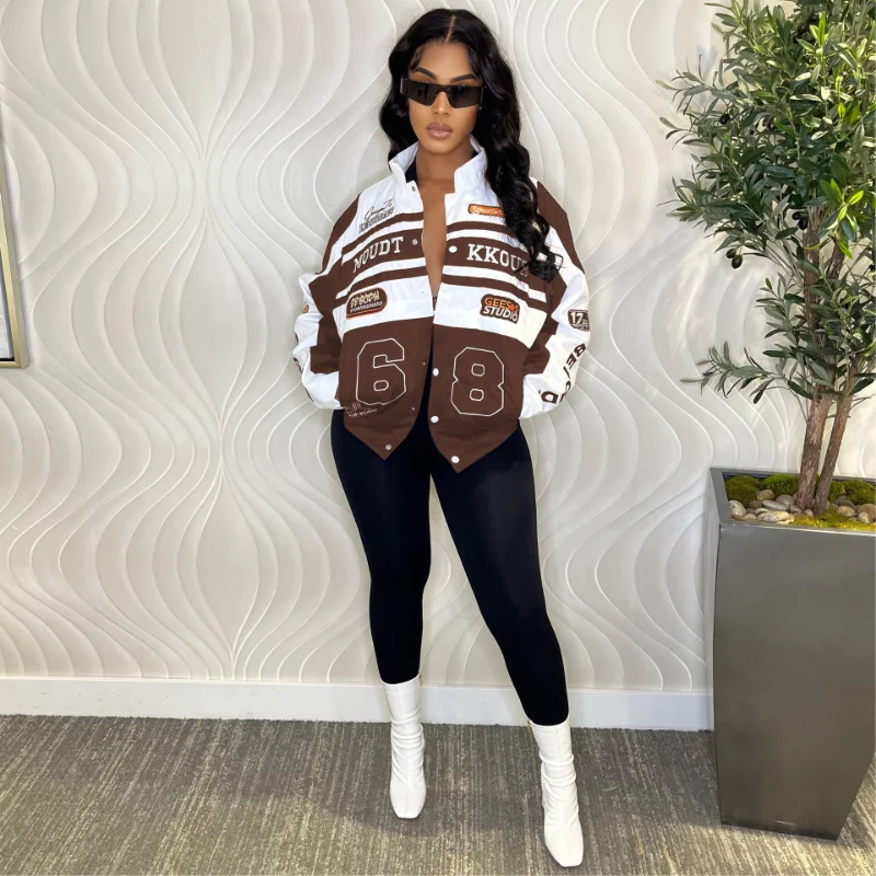 Letter Print Baseball Varsity Jacket Detachable 2 Piece Set Cyber Racer Cropped Jackets Trench Coats+ Skirt Matching Tracksuits - Купить с бесплатной доставкой