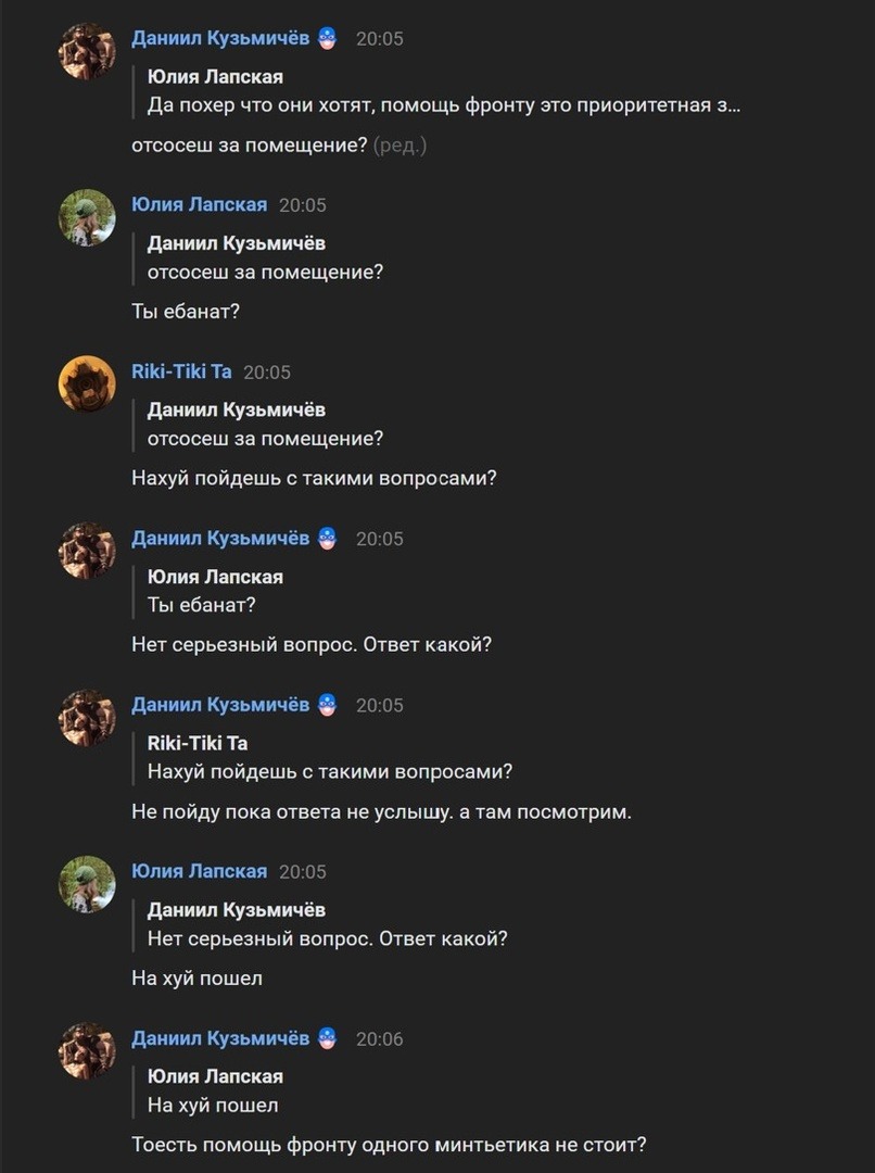 А в силу личных, идеологических или любых иных причин, этот человек потом может уйти из жожеков или быть выписанным, при этом нанеся им (и не только им) репутационный или иной вред. Так было с Владимиром Зыряновым, который присвоил себе деньги с гуманитарки, тем самым ставя под удар сборы других людей на гум.помощь.