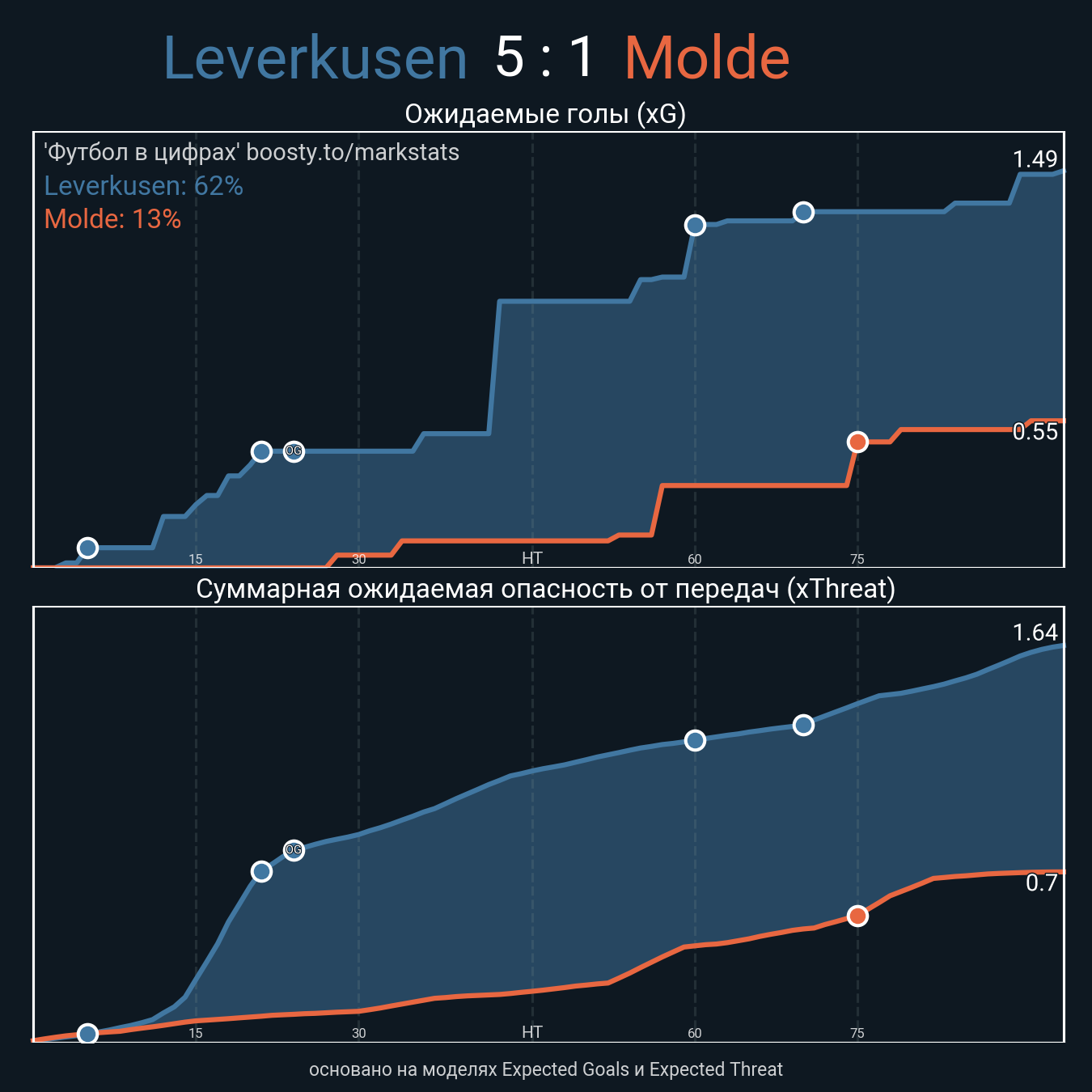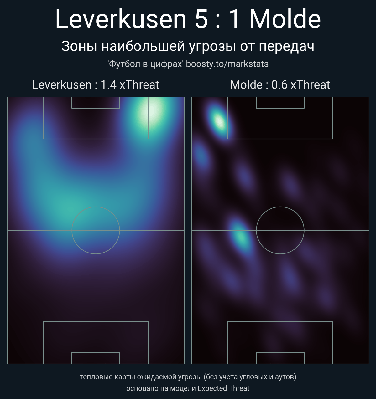 xThreat без учета угловых: 1.4 - 0.6