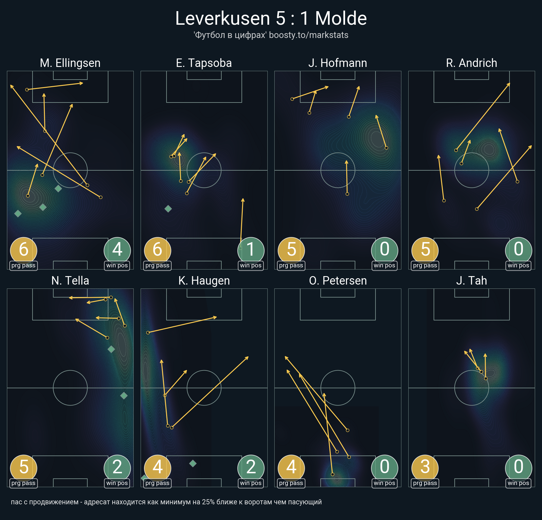 36 успешных передач из 42 попыток (1 ассист, 5 под удар, 5 с продвижением, 8 на трети соперника)