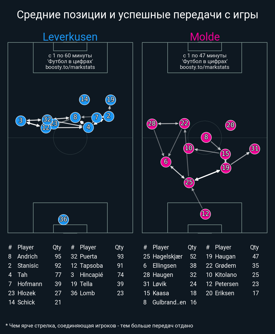 41 успешных передач из 47 попыток (5 под удар, 5 с продвижением, 15 на трети соперника)