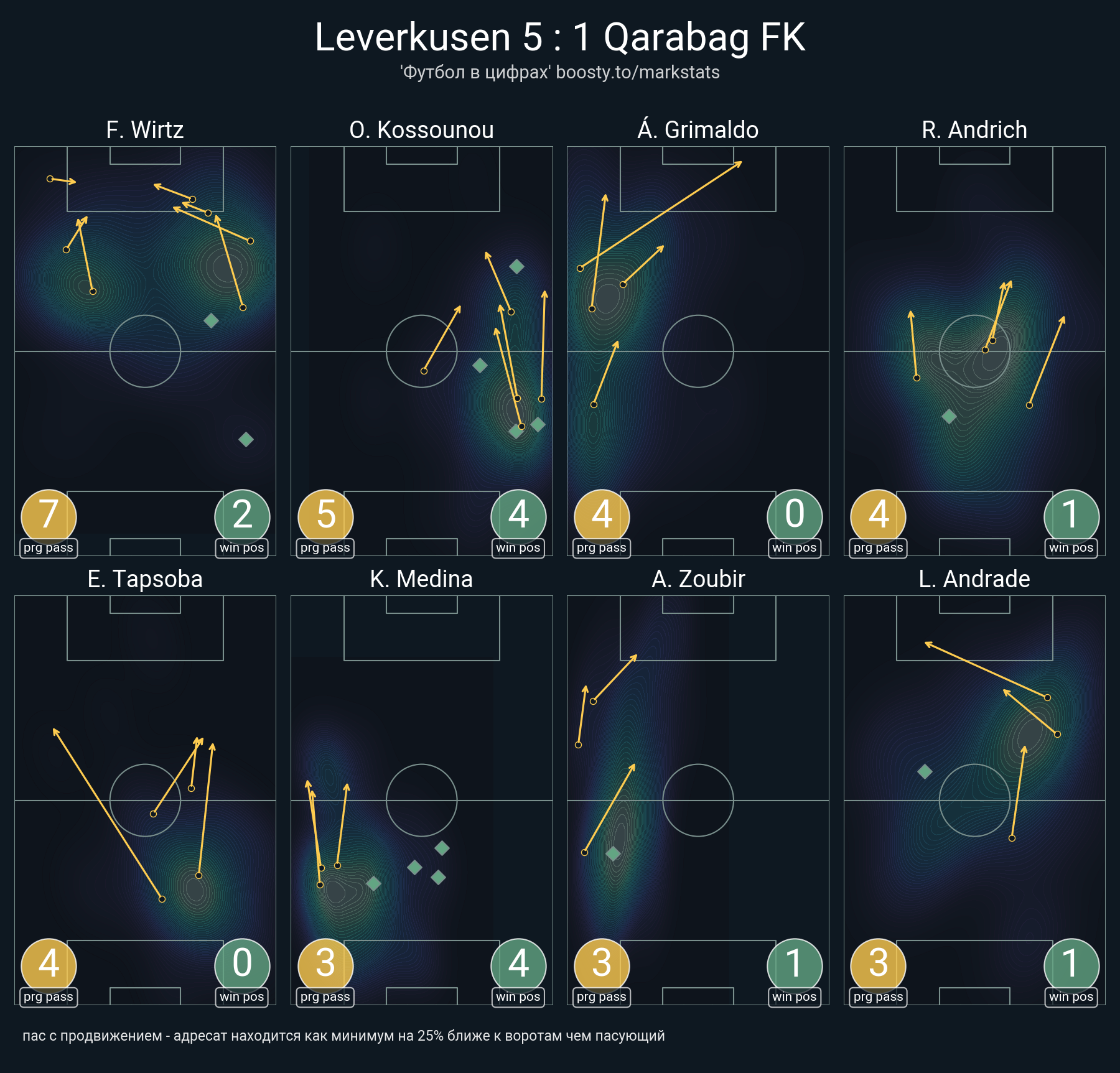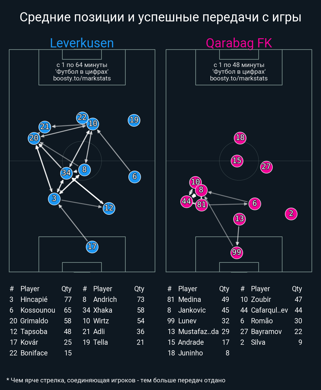 17 успешных передач из 21 попыток (1 под удар, 1 с продвижением, 8 на трети соперника)
