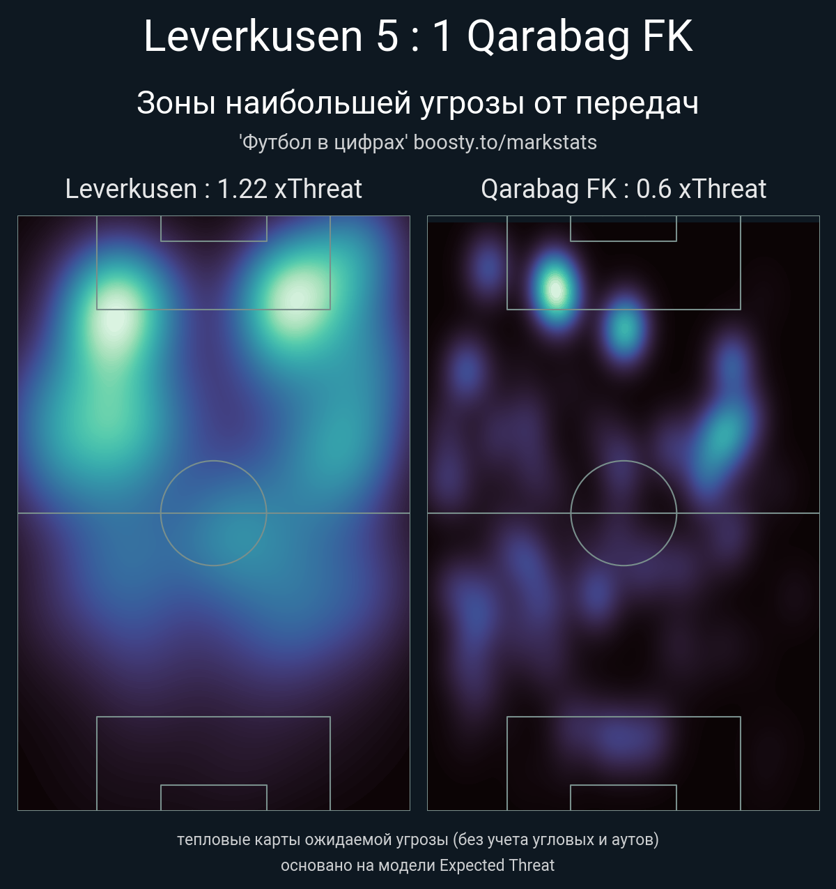 xThreat без учета угловых: 1.22 - 0.6