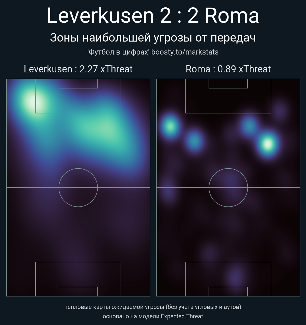 xThreat без учета угловых: 2.27 - 0.89