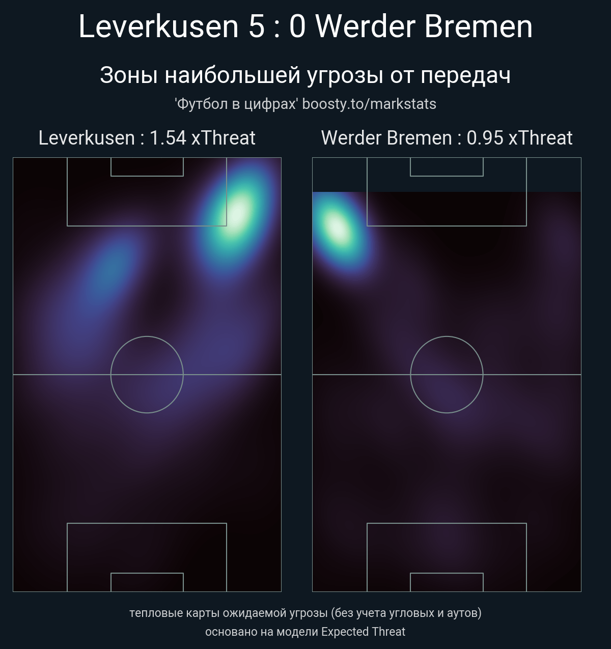 xThreat без учета угловых: 1.54 - 0.95