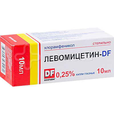 Левомицетин- df . Международное непатентованное название . Хлорамфеникол . Лекарственная форма . Капли глазные 0,5 % 8 мл, 10 мл, 15 мл . Состав . 1 мл препарата содержит: активное вещество - хлорамфеникол - 5,0 мг