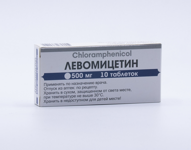 Таблетки 250 мг, 500 мг Состав Одна таблетка содержит активное вещество - хлорамфеникол (левомицетин) 250 мг или 500 мг, вспомогательные вещества: крахмал картофельный, гидроксипропилцеллюлоза, кислота стеариновая . Описание Таблетки белого или белого со слегка желтоватым оттенком цвета, плоскоцилиндрической формы, с риской и фаской .