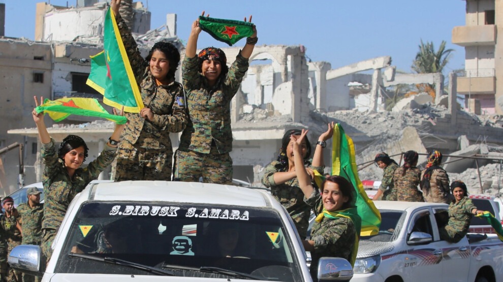 Однако, если в Алеппо, Эр-Ракке или Идлибе “советское движение” буксовало, то в Сирийском Курдистане, где в 2012 власть почти бескровно перешла в руки курдской оппозиции, - в которой огромную роль играл аффилированный с Рабочей Партией Курдистана левый Демократический Союз, - идеям самоуправления сопутствовал немалый успех. Именно благодаря тому, что “советская власть” здесь могла опираться на вооруженную силу: учрежденные под эгидой ДС “Отряды народной самообороны” (Yekîneyên Parastina Gel).