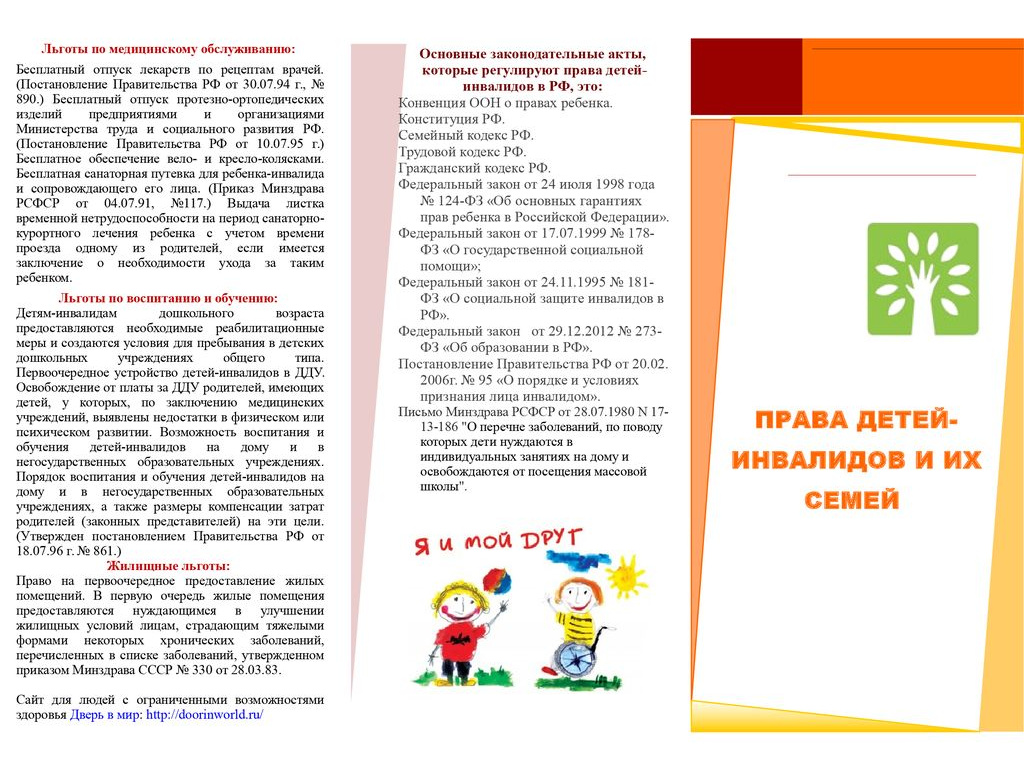 Льготы родителям детей инвалидов детства