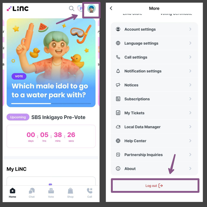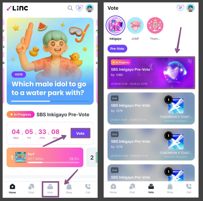 Приложение LiNC используется для предварительного голосования на шоу Inkigayo.