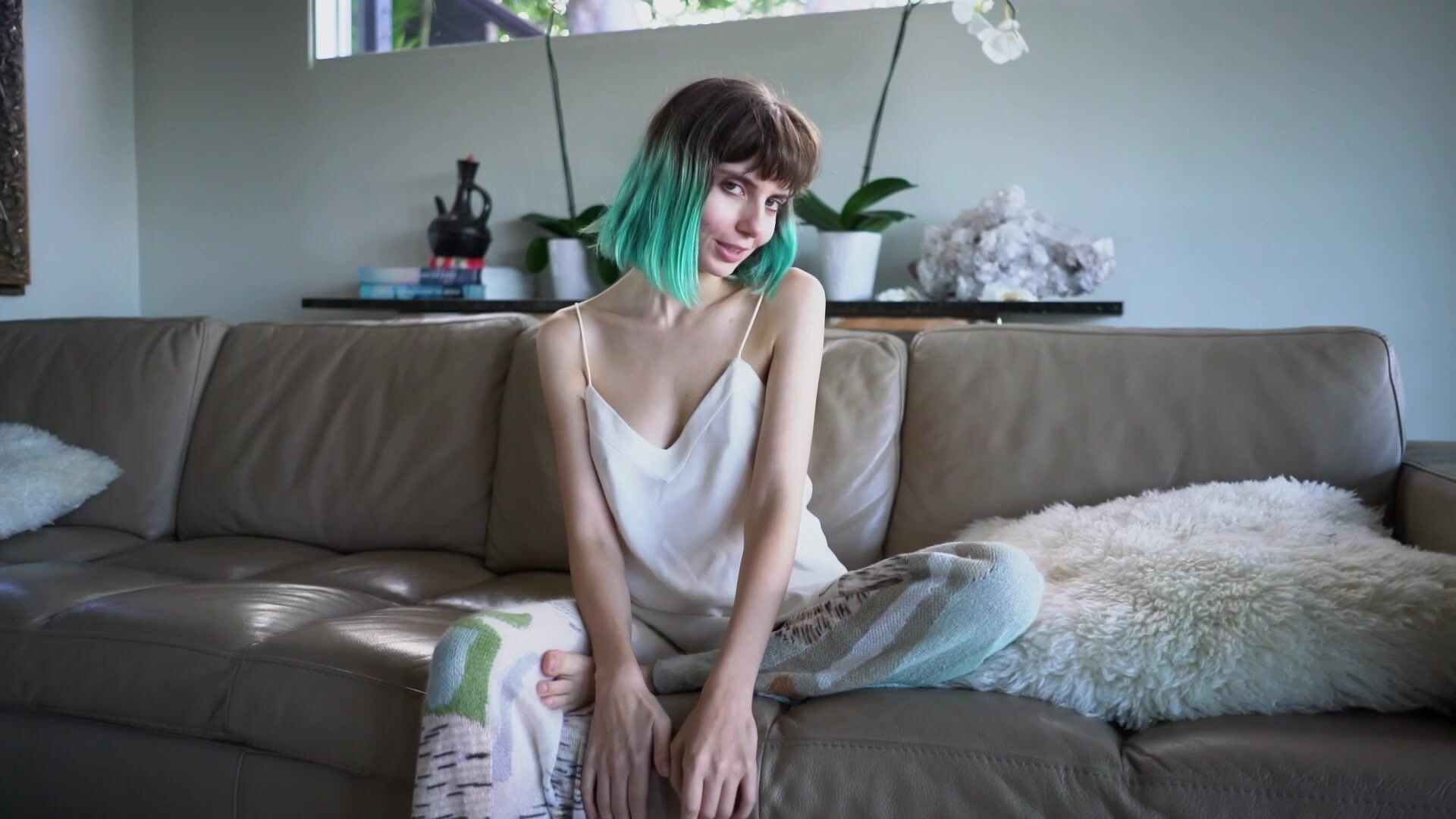 Busty teen shemale doll cumming over
