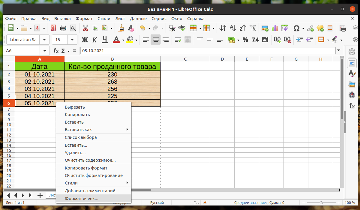 Libreoffice посчитать сумму
