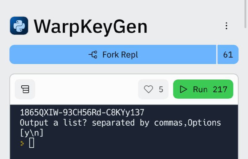 Лицензионный ключ warp