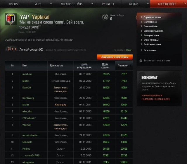 Личные очки славы на гк