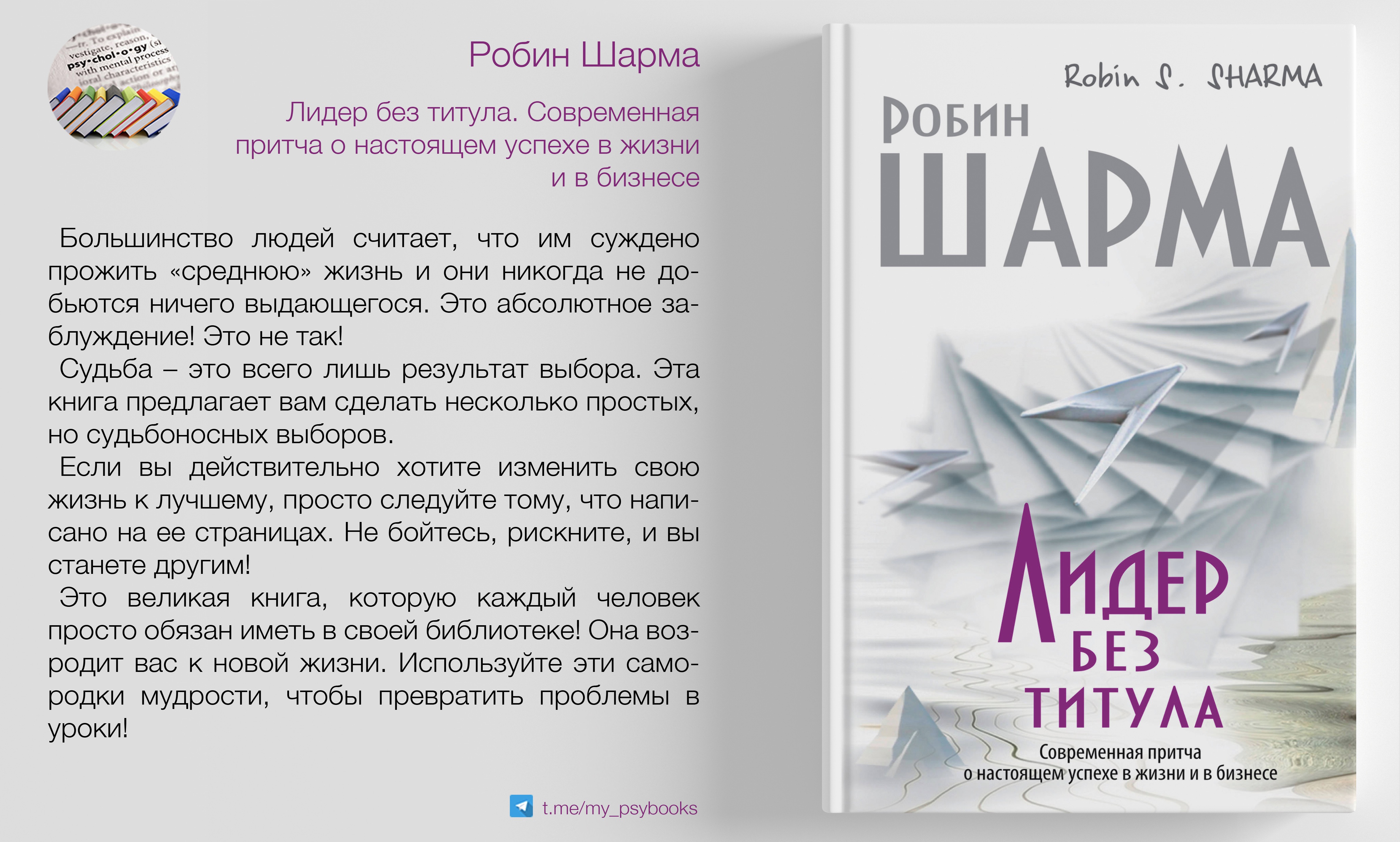 Книга «Лидер без титула» пробуждает читателя к новой, насыщенной жизни, в которой нет места отговоркам и откладыванию дел на потом, избеганию ответственности и прочим пораженческим настроениям.
