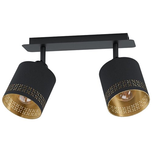 Spot ESTEPERRA Eglo 99277Spot Esteperra 99277 est un produit de la célèbre société Eglo (Autriche). Il a une puissance maximale de 56 W et éclaire une superficie allant jusqu'à 2,8 mètres carrés. m. Parfait pour des endroits tels qu'un salon, un couloir et un couloir, une chambre. S'intègre dans les intérieurs des styles suivants : moderne.Spot, marque Eglo de la série Esteperra, de style Art Nouveau, culot - E27, nombre de lampes - 2, matériaux : Métal, Tissu, couleurs : Noir, Jaune ; Noir, température de couleur : .