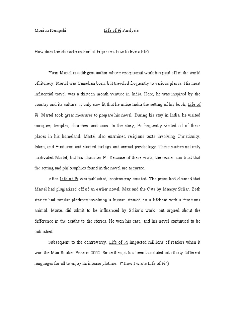 Life of Pi Essay - Free Argumentative Essays For Students