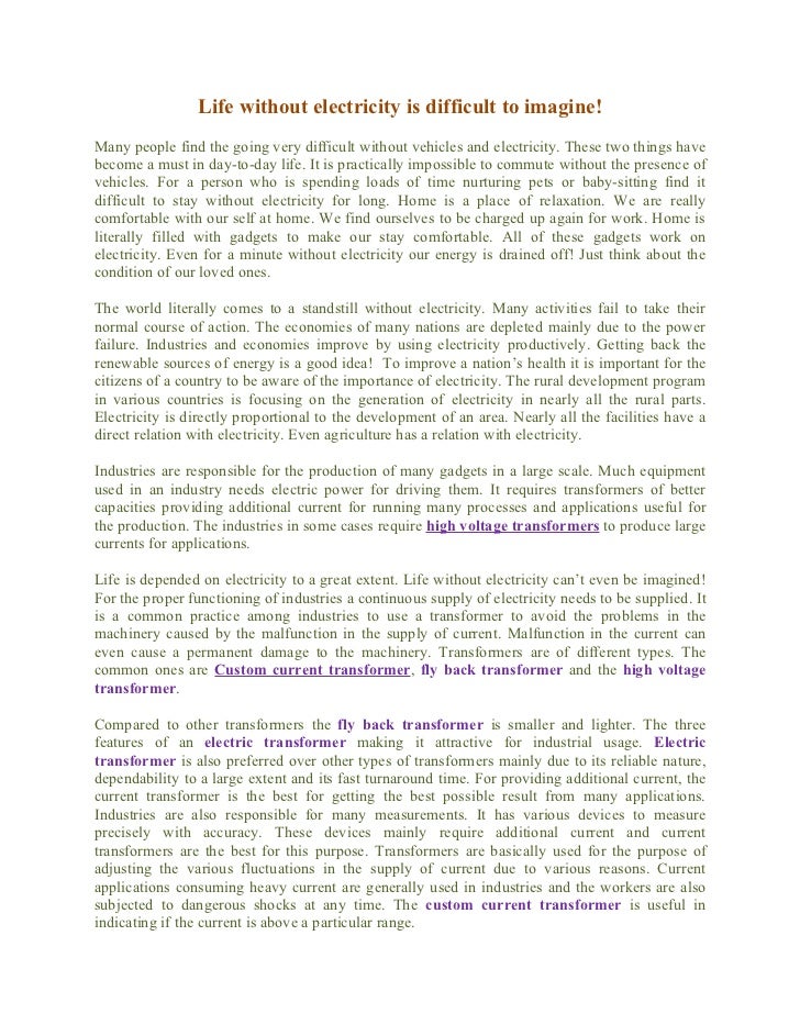 Life Without Electricity Essay , Paragraph , Article , Speech