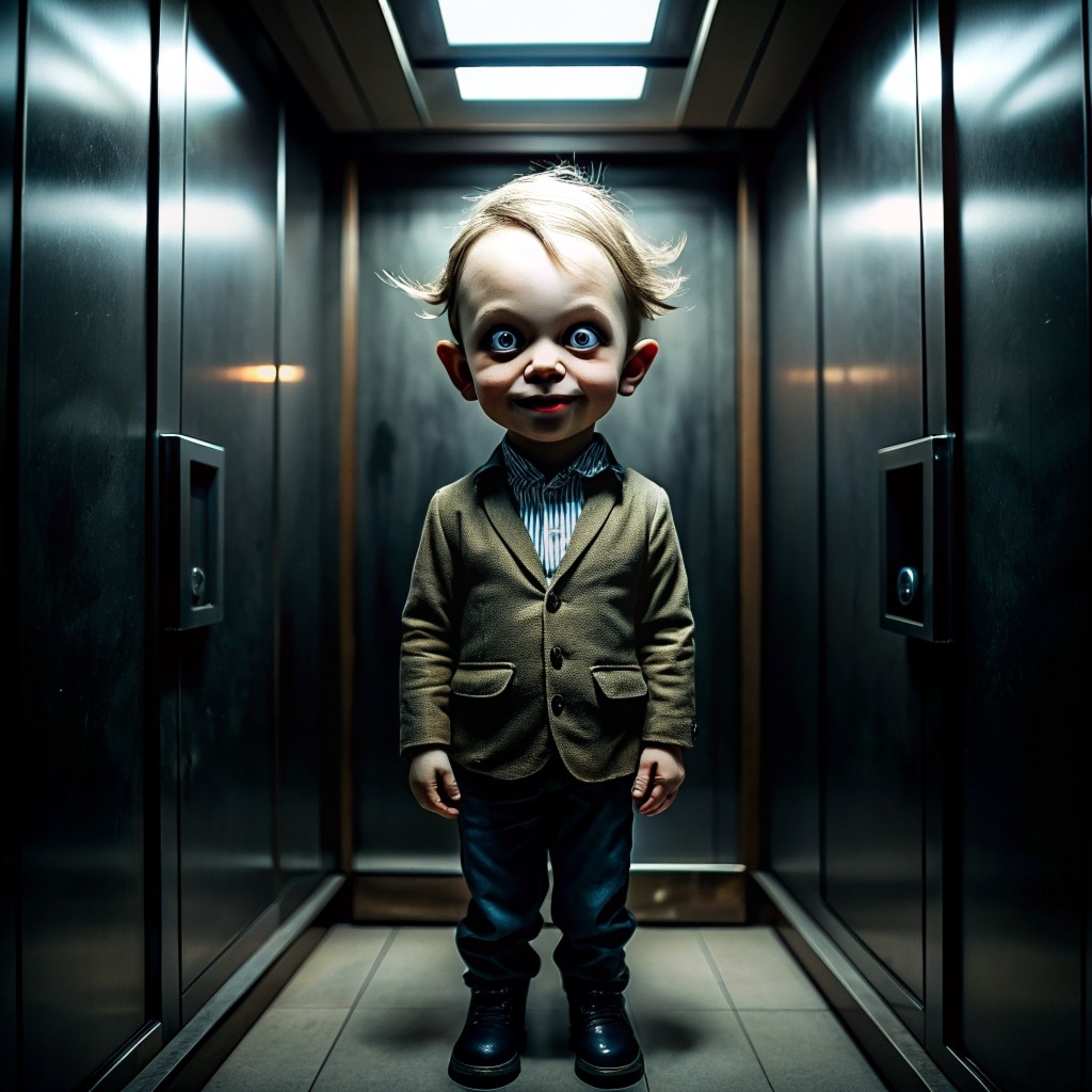 Я там на месте чуть и не обосрался. Кое-как раздвинул двери и выбрался. Тут же в лифте загорелся свет и откуда-то из шахты послышался детский смех. Вот это уже было слишком для меня. Лифт вдруг дернуло и встряхнуло, будто снизу его сильно толкнули. В щели показалась маленькая детская ручка. Я вжался в стену. Лифт поехал наверх и чем больше становился зазор, тем я отчетливей видел его, лицо мальчика лет семи. Он смотрел на меня и тихонько улыбался. Голова его была раза в два больше чем нужно, а потом, когда это повернулось, я понял, что половины головы совсем не было, только кровавое месиво.
