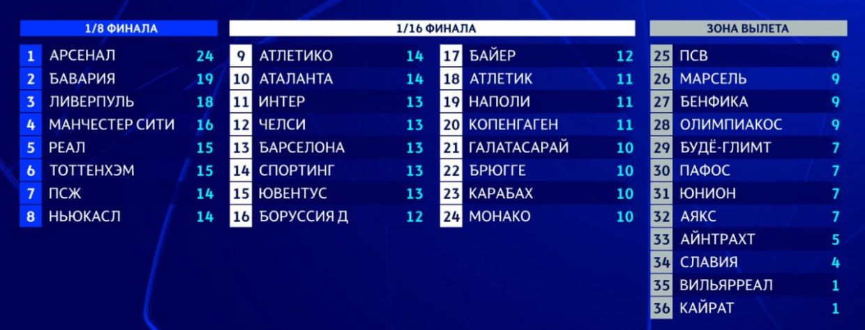 Лига чемпионов сегодня таблицы