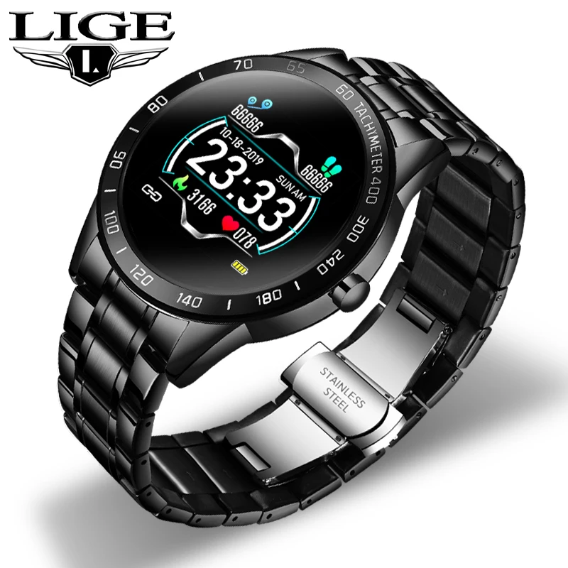 Мужские Смарт-часы lige со стальным ремешком, пульсометр, монитор артериального давления, спортивный . . .