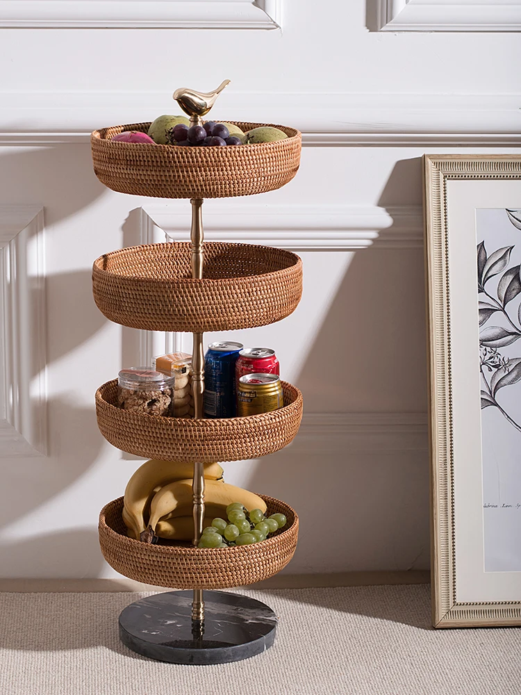 dfMbQeBVSzHere you can buy Light Luxury Brass Rattan Basket Multi-Layer Fruit Storage Rack Retro Domestic Living Room Snack Storage Rack Floor American with free delivery to your post office.