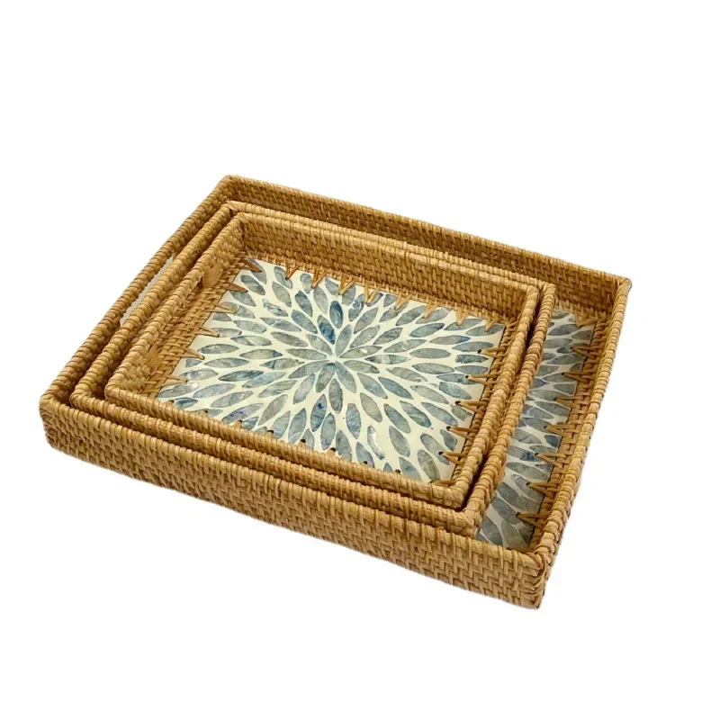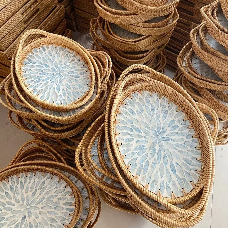 Light Luxury Color Shell Fruit Plate Hand-woven Rattan Jewelry Ornament Storage Tray Swing Plate Tea Storage Tray Storage Baske - Купить с бесплатной доставкой