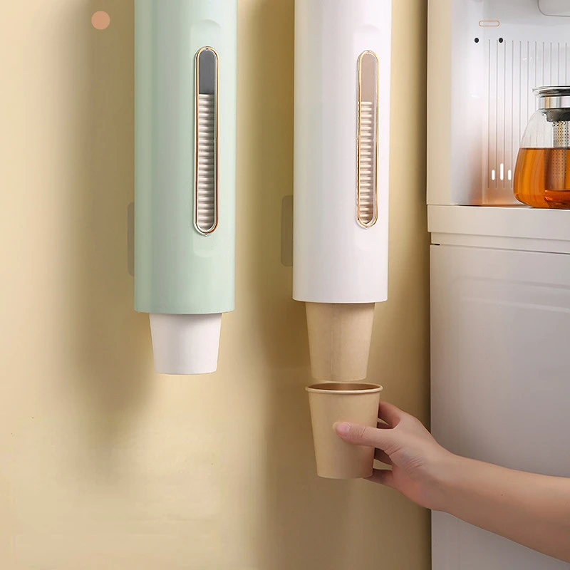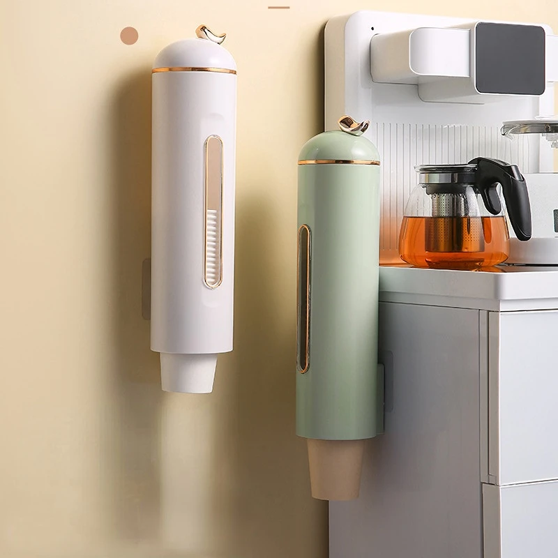Light Luxury Disposable Cup Dispenser Punch-free Automatic Remove Paper Cup Holder Wall-mounted Dust-proof Cup Storage Rack - Купить с бесплатной доставкой