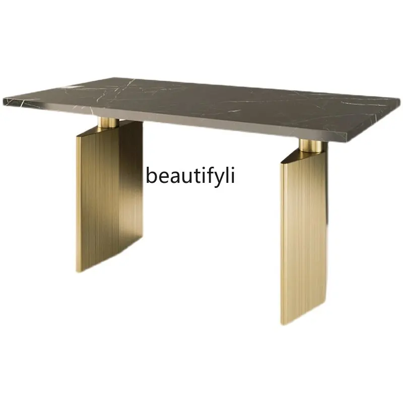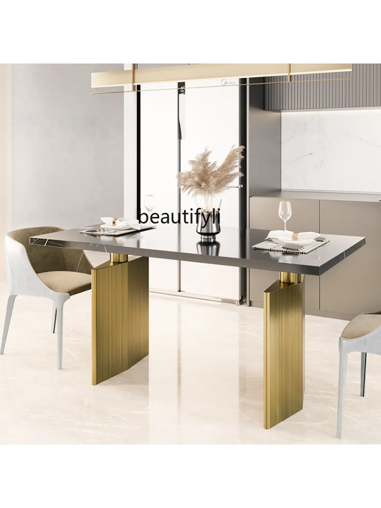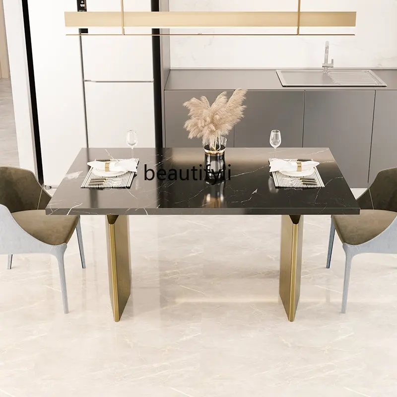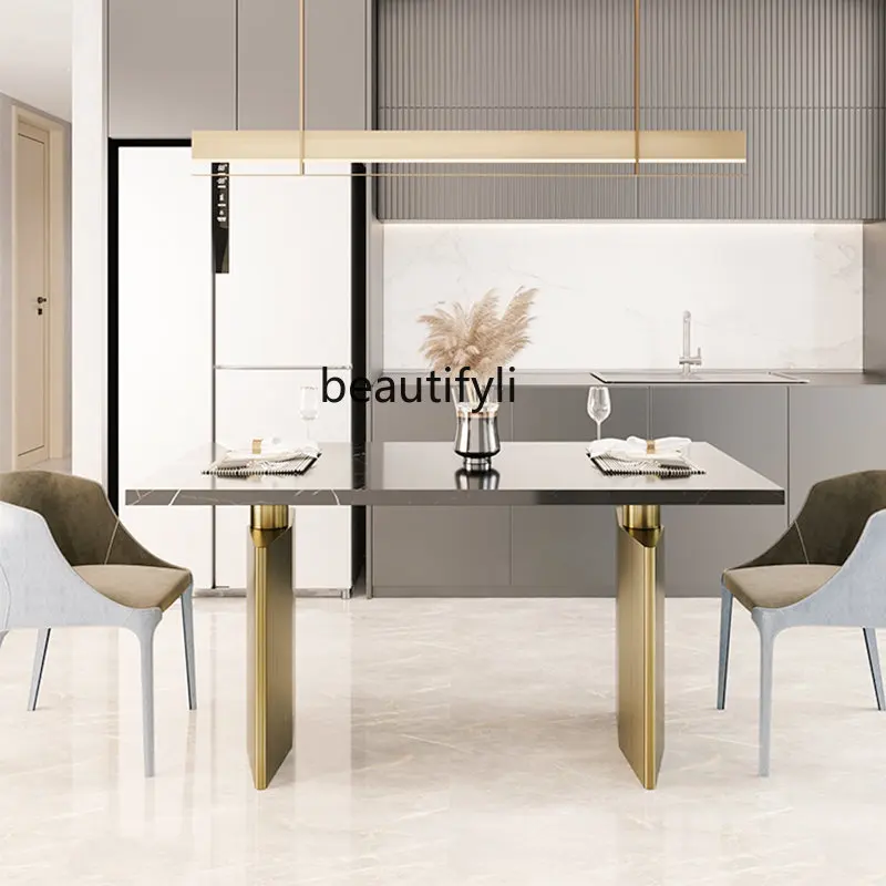 dIInWWVCFlHere you can buy Light Luxury Natural Marble Dining-Table Modern Household Stainless Steel Rectangular Dining Table with free delivery to your post office.