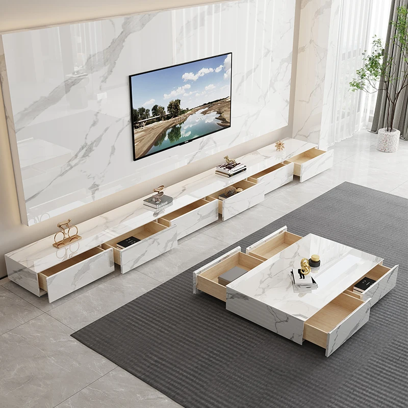 Light Luxury Rock Plate TV Cabinet, Tea Table Combination, Small Unit Italian Style Living Room, Modern and Simple, Network - Купить с бесплатной доставкой