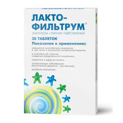 Лактофильтрум® . таблетки внутрь . АВВА РУС АО Россия . Лекарственная форма: таблетки . Состав: Состав на одну таблетку: Лигнин гидролизный (в пересчете на сухое вещество) - 355 мг . Лактулоза (в пересчете на 100 % вещество) - 120 мг .