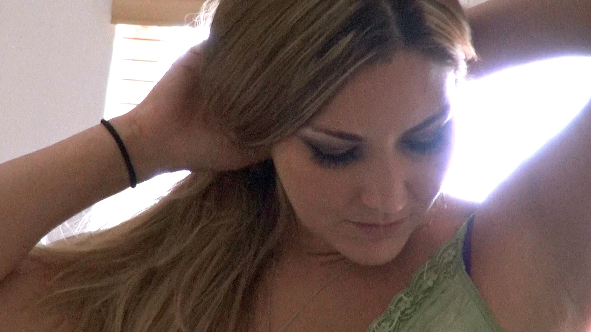 Three booty teens blindfolded fucked orgy