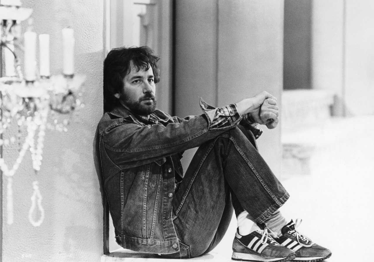Steven Spielberg descansa un momento en el plató de Indiana Jones y el Templo Maldito con el atuendo más cool de los 80: unos vaqueros dobles perfectamente ajustados y un par de zapatillas deportivas lo suficientemente desaliñadas que denotan tanto un esfuerzo considerado como una contención distante.