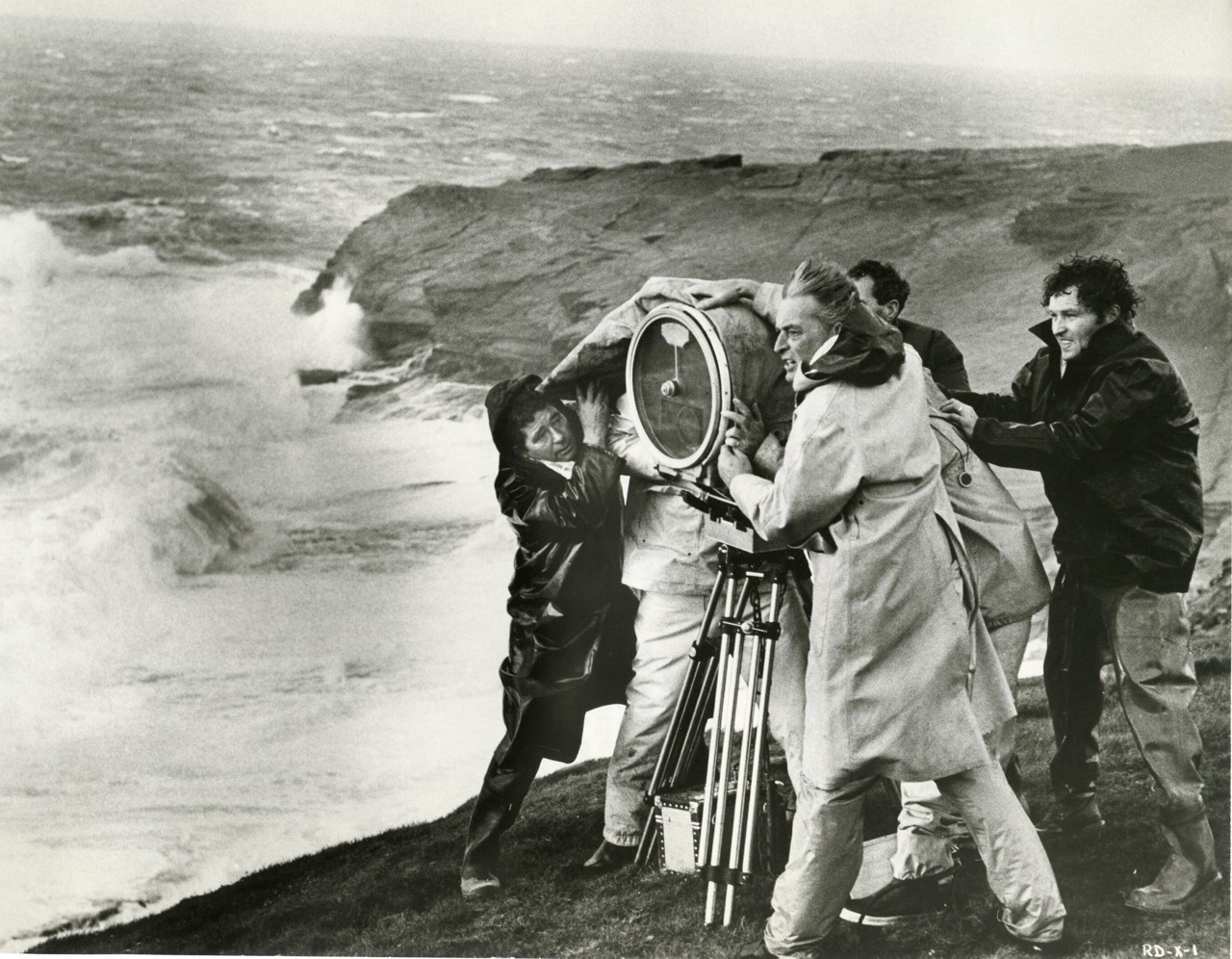 Esta foto de un David Lean azotado por el viento luchando contra las inclemencias del tiempo para conseguir su toma en el plató de La hija de Ryan es posiblemente una de las imágenes más geniales de un director trabajando. Ataviado de pies a cabeza con ropa impermeable, Lean consigue mantener el control sin esfuerzo mientras los que le rodean luchan por conseguirlo.