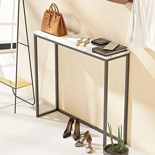 "Lin 36" Faux Marble Console Table with Gold Metal Frame, Rectangular Shape Sofa Table for Entryway, Table for Dining Room, Tea" * Buy Now With Free Shipping Just For $54