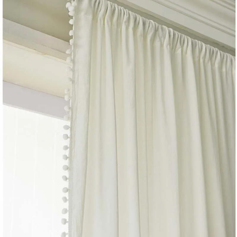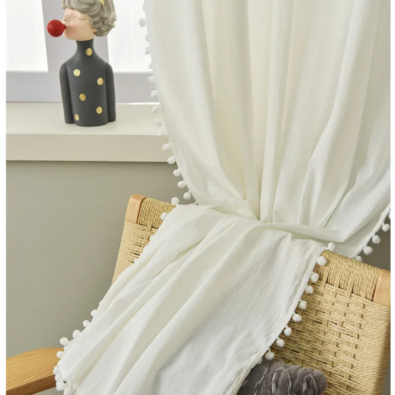 "Linen Look Pom Pom Textured Solid Semi Sheer Airy Tassel Energy Efficient Privacy Elegant Window Curtain Drape Rod Pocket TJ7876" * Buy Now Just For 19$