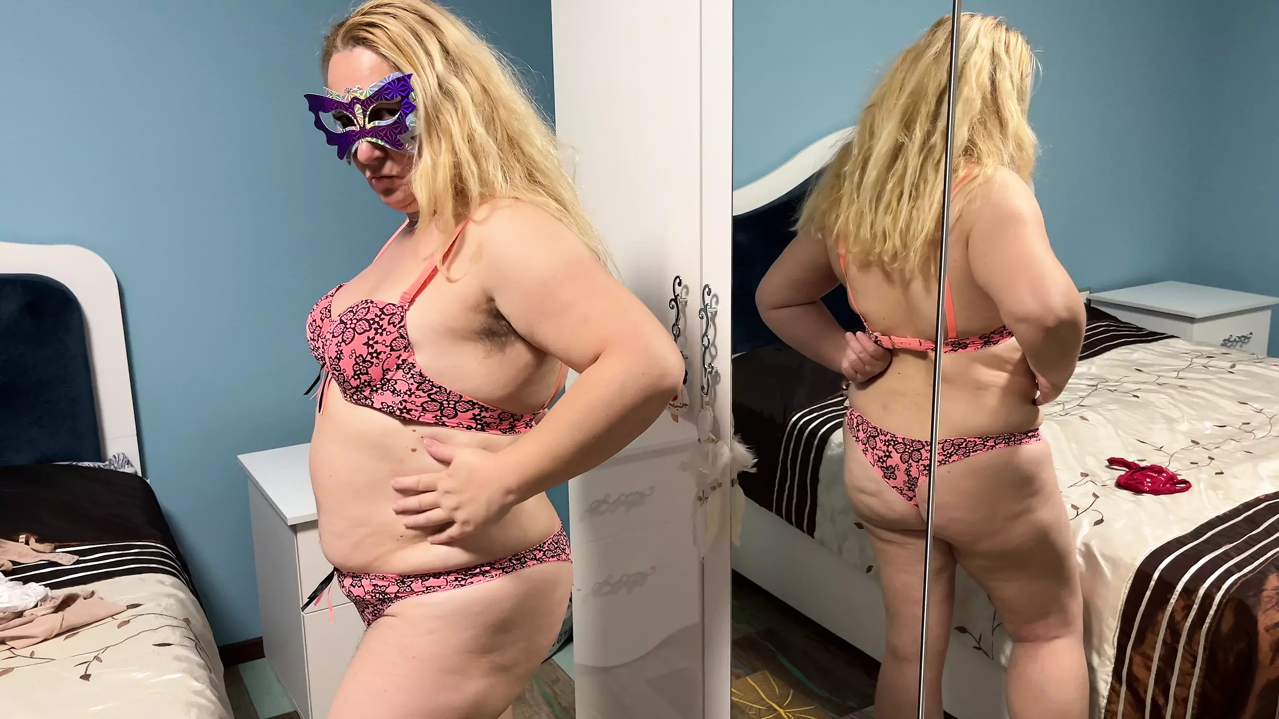 Lingerie-clad amateur mom doing striptease