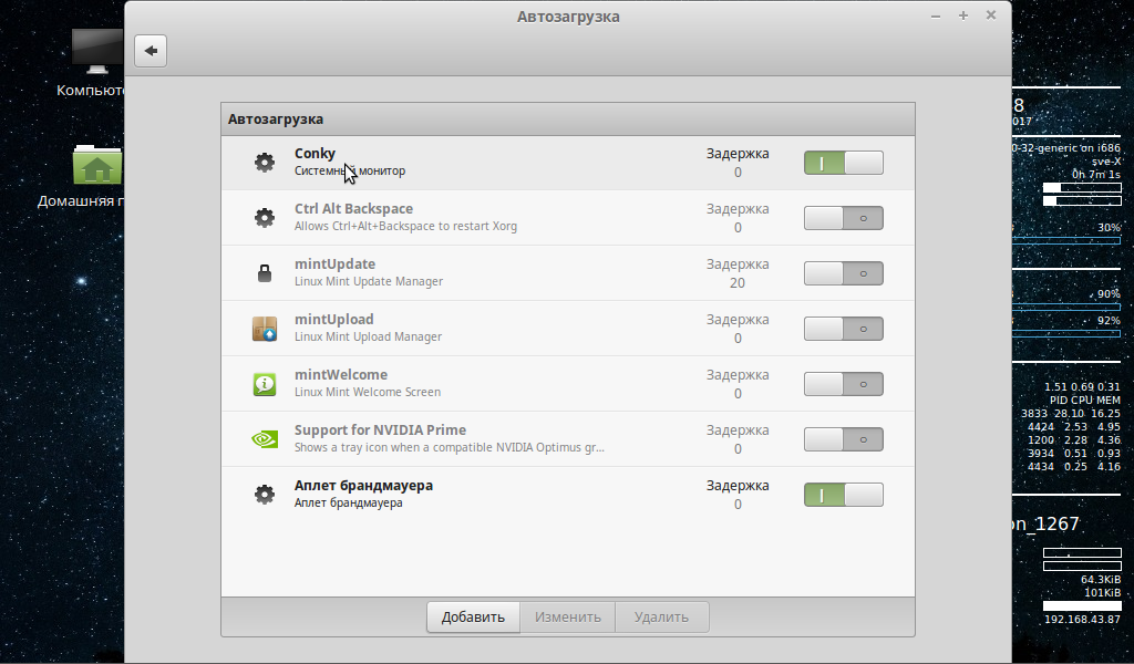 Linux Mint Системный Монитор