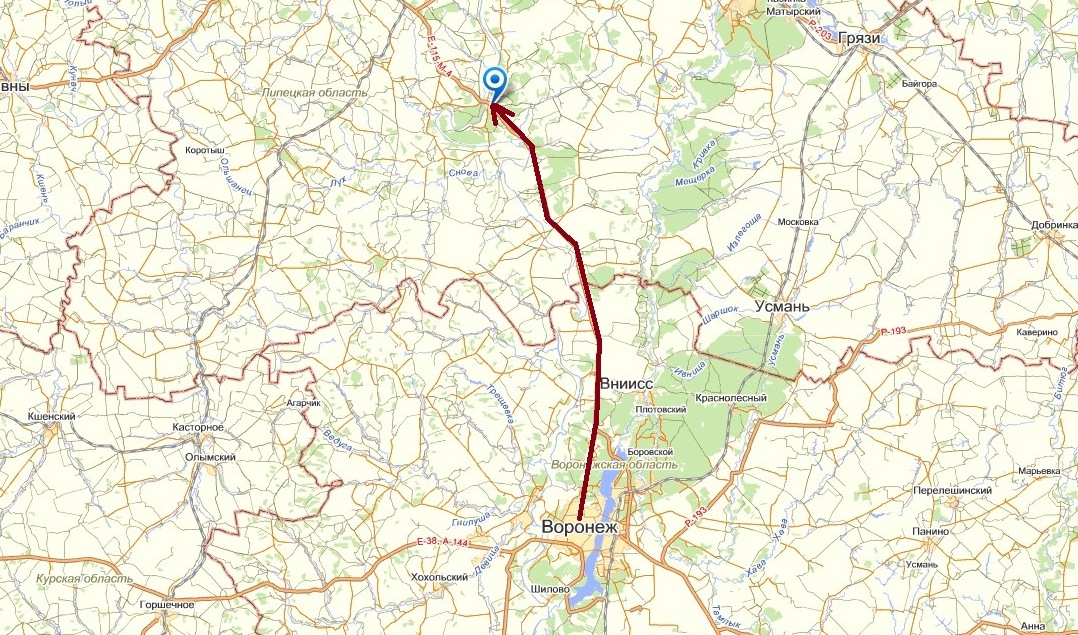 Липецкая область карта расстояние