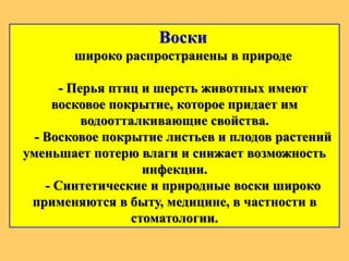 3 . Гликолипиды… . производные сфингозина, содержащие фосфорную кислоту . производные глицерина, содержащие углеводный остаток . производные этиленгликоля, содержащие углеводный остаток . производные сфингозина, жирной кислоты и углевода . 4 . Воска - сложные эфиры . . .